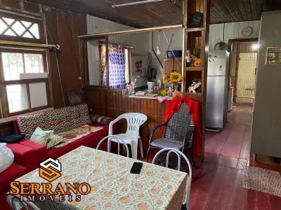 - Composta por sala de estar e jantar, cozinha, 3 dormitórios, 2 banheiros sociais, abrigo para carros. Pátio na frente e aos fundos, área de serviços. Piso e forro em madeira.