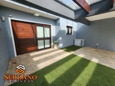 - Composta por sala de estar/jantar e cozinha em ambiente integrado, 3 dormitórios sendo 1 suíte, 1 banheiro social e abrigo para 2 carros, área de serviços com churrasqueira.