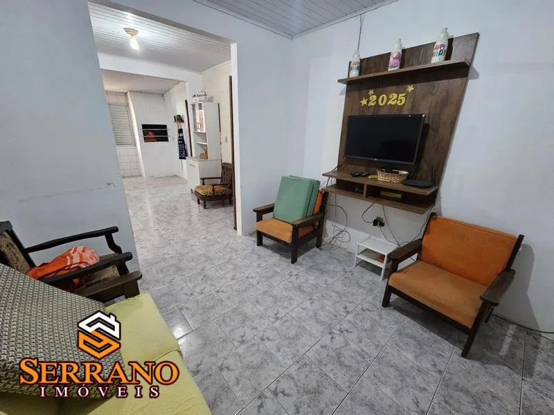 - Composta por sala de estar e jantar, cozinha, 3 dormitórios sendo 1 suíte, 1 banheiro social, área de serviços com churrasqueira, caixa d'água e garagem fechada com vaga para 1 carro. Pátio na frente, aos fundos, piso cerâmico e forro em PVC.
