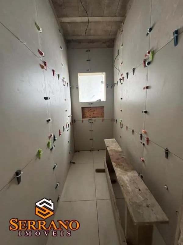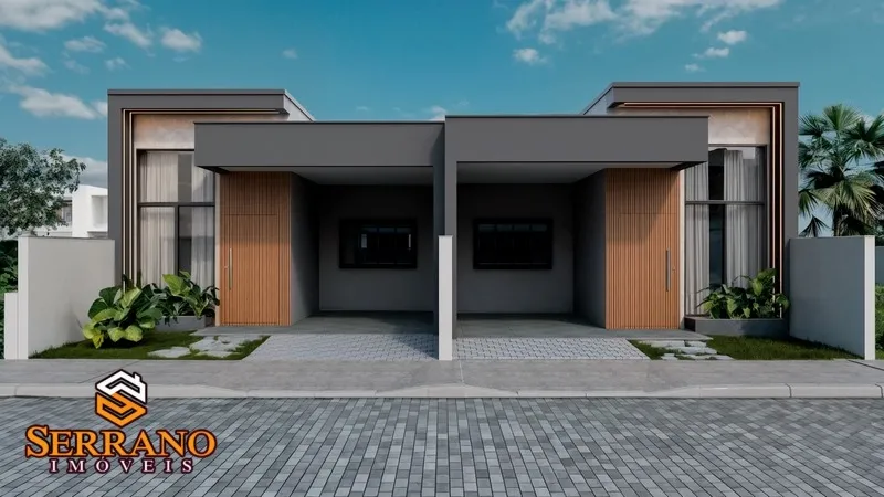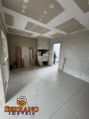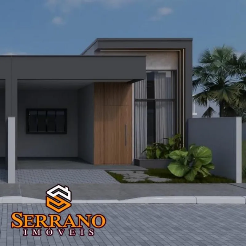 - Composta por sala de estar/jantar e cozinha em ambiente integrado, 2 dormitórios sendo 1 suíte, 1 banheiro social, abrigo coberto para um carro e área de serviços com churrasqueira.