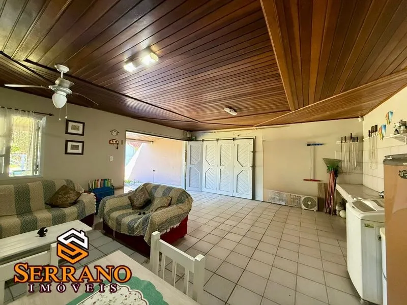 Composta por sala de estar integrada à cozinha, garagem fechada, 2 dormitórios, banheiro social e área coberta com churrasqueira, fazendo integração ao pátio totalmente gramado e cercado. Piso cerâmico e forro em madeira cedrinho.
