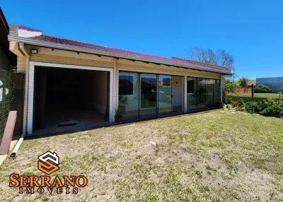 Construída em alvenaria, com telhas de barro e forro em laje de concreto, dispõe de ampla sala de estar que faz integração com a cozinha, 02 dormitórios, 02 banheiros sociais, área de serviços e garagem com espaço de lazer e churrasqueira.