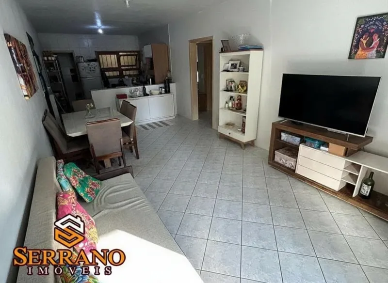 Construída em alvenaria, com forro em laje de concreto e piso cerâmico. Dispõe de ambiente amplo com sala de estar integrada à cozinha, 3 dormitórios, 2 banheiros sociais, área de serviços com churrasqueira e garagem fechada.