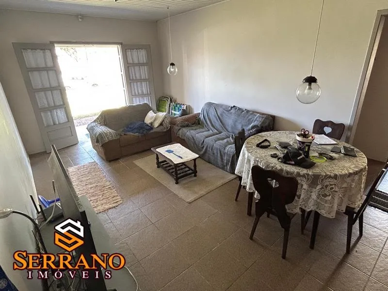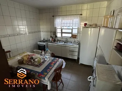 Dispõe de ambiente amplo, composto por sala de estar, sala de jantar e cozinha em ambiente integrado, 4 dormitórios, 2 banheiros sociais, garagem fechada para 2 carros com churrasqueira, além de área de serviços. Piso cerâmico e forro em PVC.