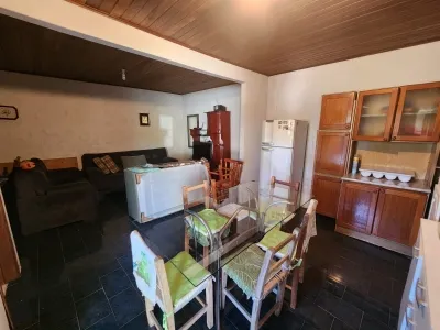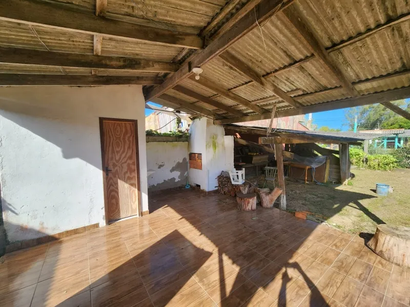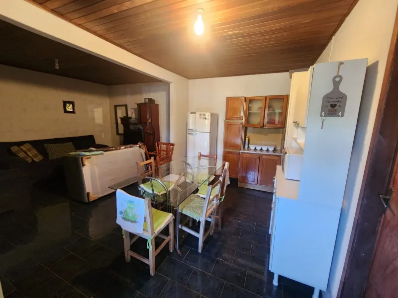 Composta por 2 dormitórios, 2 banheiros sociais, sala de jantar, sala de estar e cozinha em ambiente integrado, garagem fechada para 1 carro e abrigo para mais 1 carro, área de serviços e churrasqueira, piso cerâmico e forro em madeira.