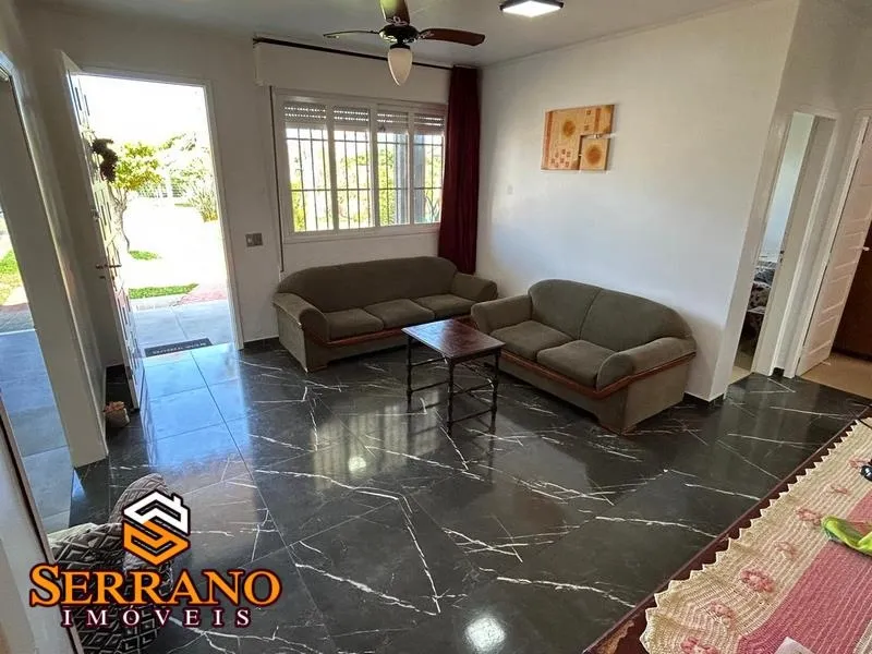 É composta por 3 dormitórios, 2 banheiros sociais, sala de estar, sala de jantar e cozinha integrados à garagem, despensa, área de serviços, churrasqueira e caixa d'água. Piso cerâmico e forro em laje de concreto.