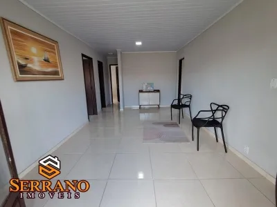 Construída sob um terreno alto e amplo, é composta por 4 dormitórios sendo 1 suíte e 1 com lavabo, banheiro social, sala de estar, sala de jantar e cozinha, abrigo para carro, área de serviços e churrasqueira. Piso cerâmico e forro em PVC.