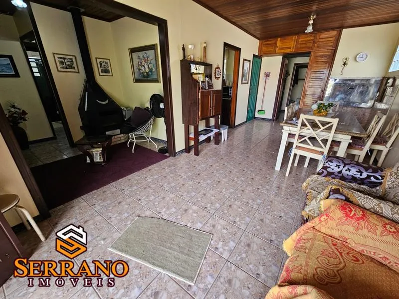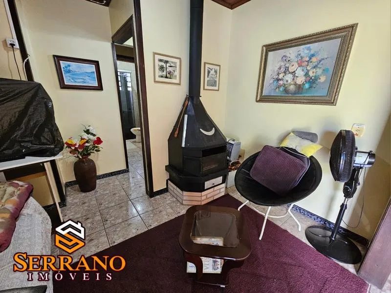 O imóvel é composto por 5 dormitórios sendo 1 suíte e 2 banheiros sociais, sala de estar com lareira integrada à sala de jantar, cozinha, área de serviços e churrasqueira. Piso cerâmico, forro em PVC, garagem fechada para 1 carro.