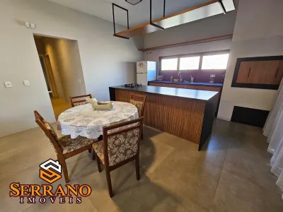 O imóvel é composto por 3 dormitórios sendo 1 suíte, sala de estar com lareira, sala de jantar e cozinha compartilham ambiente integrado (estilo americano), área de serviços e churrasqueira. Piso porcelanato e aberturas em PVC alumínio e vidro.