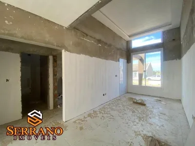 O imóvel é composto por 3 dormitórios, sendo 1 suíte, 1 banheiro social, sala de estar e cozinha compartilham ambientes integrados, churrasqueira e abrigo para carro. Piso frio em cerâmica e forro em laje. O imóvel possui poço artesiano e pátio fechado.