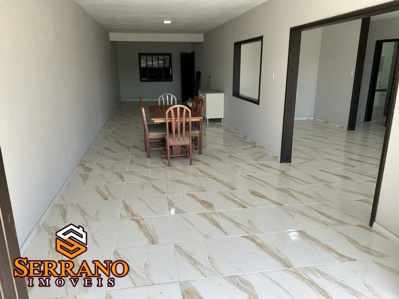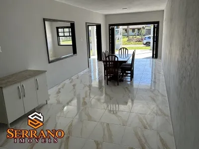 - Composta por ampla sala de estar integrada à sala de jantar com cozinha, garagem fechada para 2 carros, 2 banheiros sociais, 3 dormitórios, área de confraternização com churrasqueira e ótimo espaço de
